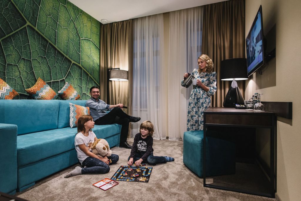 Двокімнатний просторий номер, розрахований на максимально комфортний відпочинок двох або більше гостей, а також є оптимальним варіантом для відпочинку разом із родиною. Номер зонований на спальню та вітальню. У спальні на Вас чекатиме атмосфера затишку та відпочинку, а у вітальні із комфортом можна провести своє дозвілля. Кожна деталь номеру унікальна, оскільки він зі смаком обставлений дизайнерськими меблями. Спальня має ліжко 160 см завширшки з ортопедичним матрацом, а вітальня - розкладний диван, на якому у випадку необхідності можуть розміститись ще двоє гостей. У номері є кондиціонер, міні-бар, сейф, стаціонарний телефон, smart телевізор і потужний Wi-Fi. Ванна кімната номеру облаштована душовою кабіною.